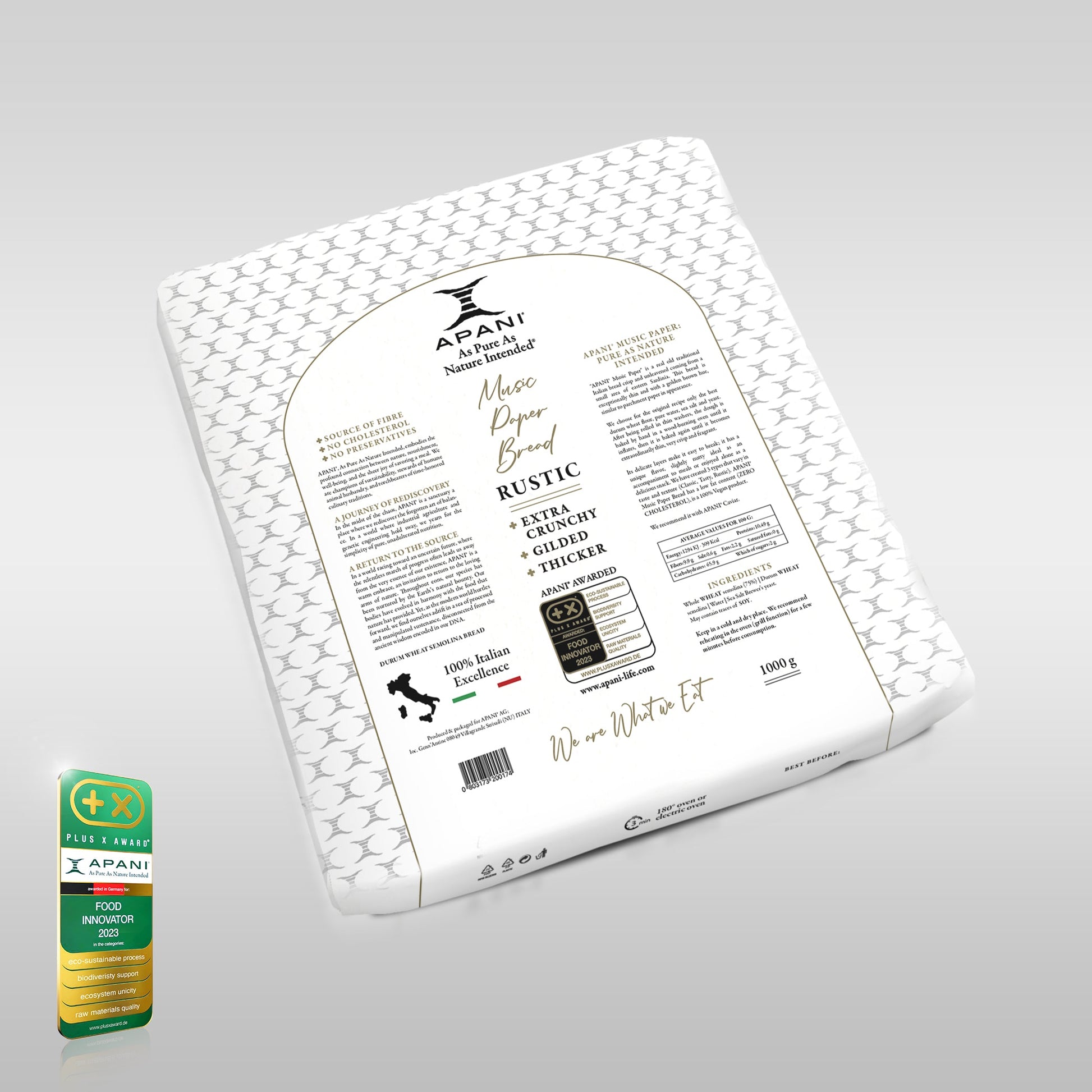 A typical product of the Ogliastra region, known to be the land of centenarians, APANI® Music Paper Bread - Rustic is known for its crunchy texture and long shelf life. Thicker than Classic version, Rustic has a long history: in the past, it was traditionally made by shepherds who needed a bread that would last a long time. This particular product is characterised by the double baking that serves to make it golden and crispy. APANI® Music Paper Bread - Rustic version - is incredibly versatile: it can be enjoyed as a snack, used as a base for various dressings and creams, served with cold meats and cheeses, used as a base for bruschettas; it is also suitable for soups and salads. Discover the unparalleled flavour of APANI® Music Paper Bread - Rustic version: exceptional quality characterised by its rustic charm and crunchy texture; a testament to our commitment to the search for products as pure as nature intended
