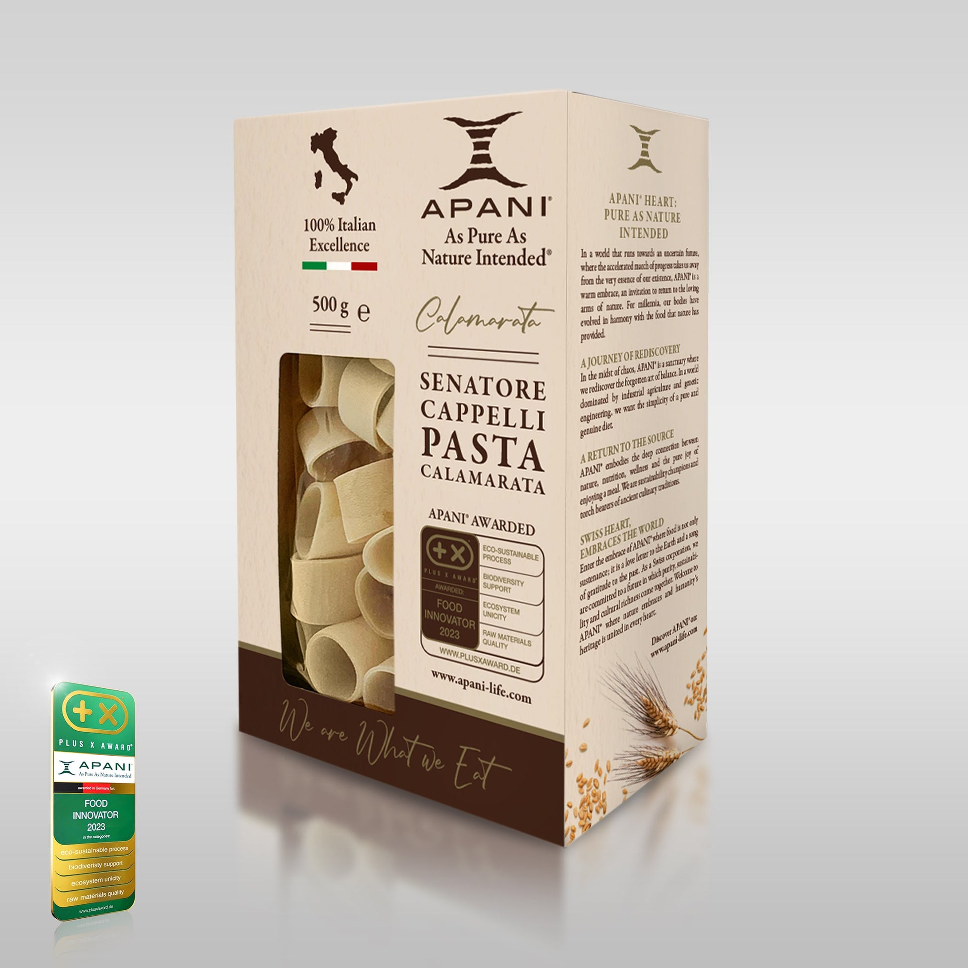 APANI® Senatore Cappelli Calamarata pasta is known for its exceptional versatility and superior quality. Its robust, nutty flavour is testament to meticulous farming practices that have been handed down for generations. Savour the taste of Italy’s rich agricultural heritage with APANI® Calamarata Senatore Cappelli, discover how tradition, quality and flavour come together in every meal.